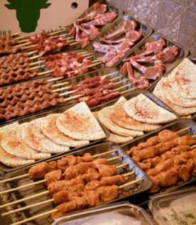 15 سيخ كباب 15 سيخ طاووق 15 حبة ريش 15 سيخ تكة لحم 15 حبة عرايس 15 حبة كفتة بالجبن 2 ماعون حمص