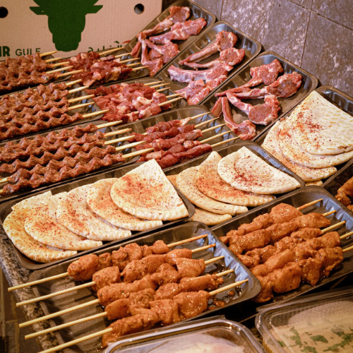 15 سيخ كباب 15 سيخ طاووق 15 حبة ريش 15 سيخ تكة لحم 15 حبة عرايس 15 حبة كفتة بالجبن 2 ماعون حمص